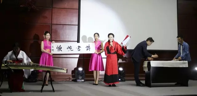 联谊会上,文传学院的教师代表也通过自己的才艺展示向毕业生送去祝福。王桢老师的独唱《相逢是首歌》一开口便惊艳到现场观众,同学们表示“唱的太好听了”。 赵永刚老师和吴畏老师联袂带来了表演《美哉,诗经!》,吴畏老师铿锵有力,感情饱满的朗诵引来阵阵掌声。赵永刚老师还现场挥墨并将墨宝亲手送予现场幸运观众,寄语他们“爱读书,多读书”。