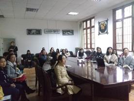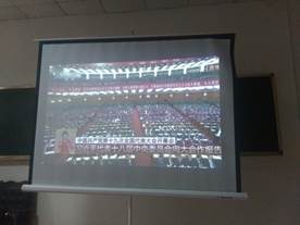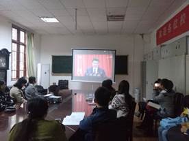 2017年10月18日上午9点,文学与传媒学院在人文楼202会议室设置直播观看室,安排在校的教师党员、没有课的学生党员和入党积极分子集中收看十九大开幕式。