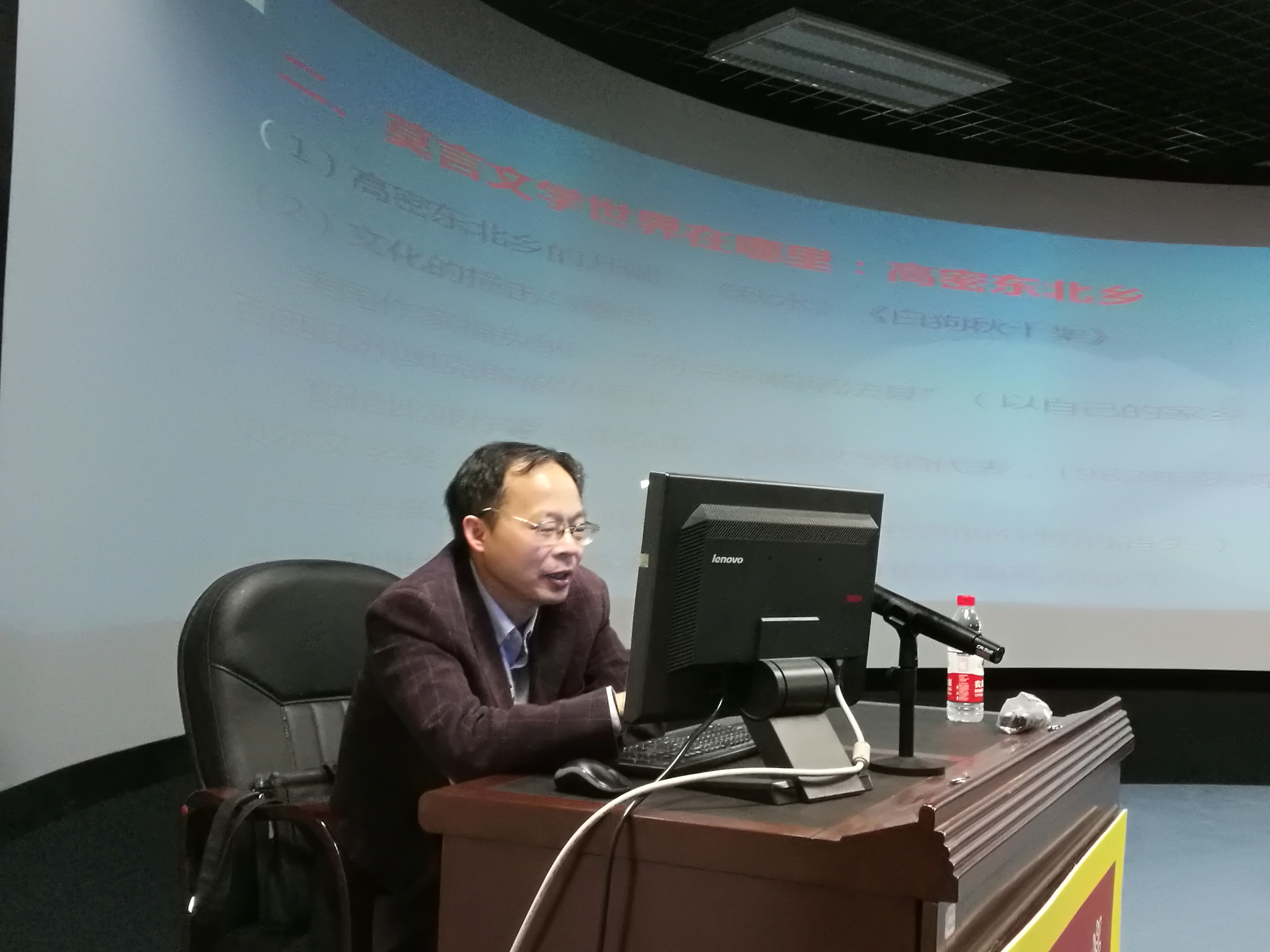 4月11日晚,文学与传媒学院博士论坛第四讲在慎思楼情景模拟实验室举行,魏家文副教授讲解“莫言的文学世界”。姚亮博士主持论坛,中文系主任赵永刚老师参加。中文系本科生、现当代文学专业硕士研究生等近百人认真听取了讲座。