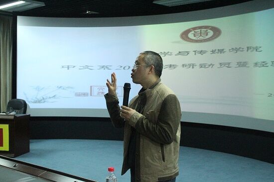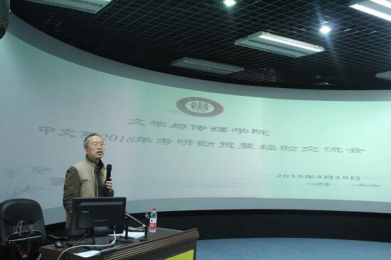 交流会接近尾声,中文系副主任杨世海副教授为在座的同学们加油、打气。他说:“考研是一个艰难、孤独的过程,希望同学们不忘初心,坚定考研之路,突破自我。预祝大家考研成功,金榜题名。”