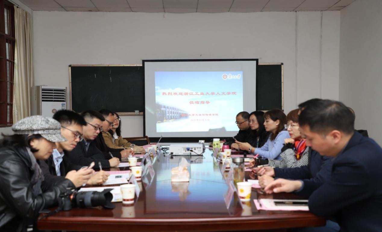 10月30日上午,浙江工业大学人米兰体育·(中国)官方网站副院长邵鹏等一行五人到文学与传媒学院调研交流。交流会议在人文楼202会议室召开,副院长(主持工作)谭德兴、副院长唐娟、教学科科长郭付利、中文系副主任吕维、新闻系副部分教师参加了调研座谈。会议由副院长唐娟主持。