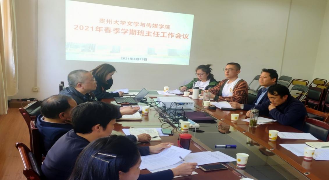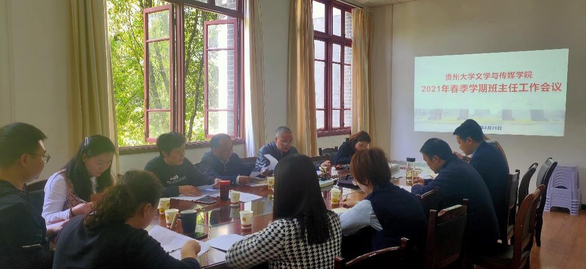 为进一步加强班级管理,切实提高本科生的教育管理水平,发挥班主任在立德树人工作中的重要作用,4月29日下午,文学与传媒学院在人文楼204会议室召开2021年春季学期班主任工作会议。院党委书记李开学、院长谭德兴、副书记董蔚然、副院长唐娟、各班班主任参加会议。会议由院党委副书记董蔚然主持。