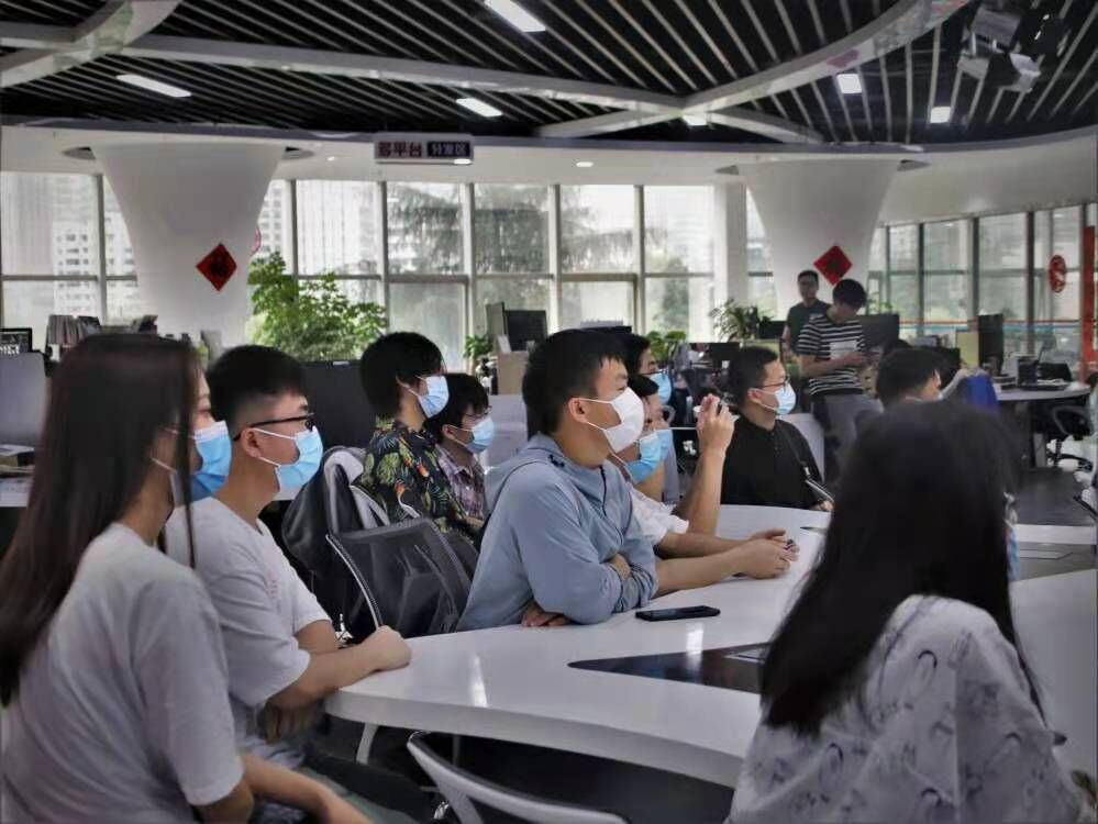 在贵州日报当代融媒体集团,天眼新闻总编室主编、机关团工委副书记、集团团委副书记田旻佳带领同学们参观了贵州日报报刊社史馆、天眼音视频演播制作基地和融媒体数据中心及融媒体中心厨房等地,深入了解贵州日报的发展历程、工作方向以及融媒体时代下大数据技术对新闻事业发展的意义和作用。