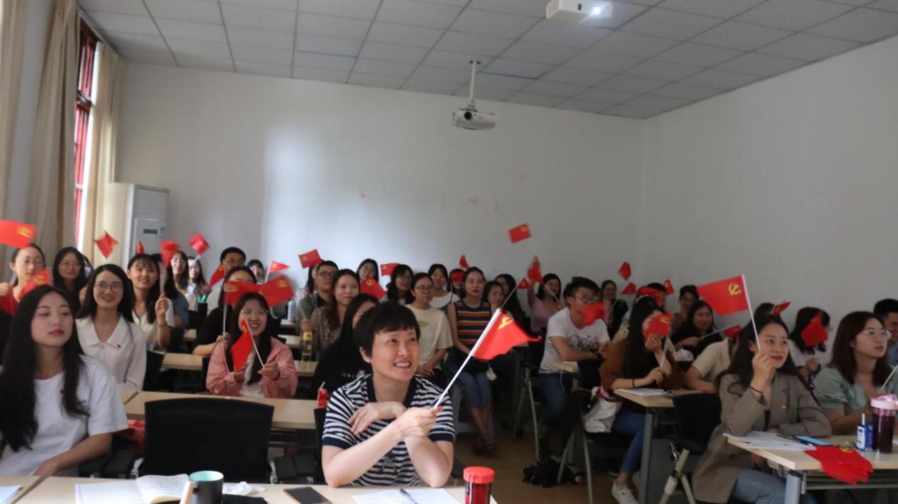 2021年7月1日上午,文学与传媒学院党委组织全院师生党员在人文楼103分会场集中收看庆祝中国共产党成立100周年大会。学院党委书记李开学、院长谭德兴在学校主会场贤政楼107报告厅收看直播,学院党委副书记董蔚然、组织员姬丹老师、党政办方芳老师在分会场收看。