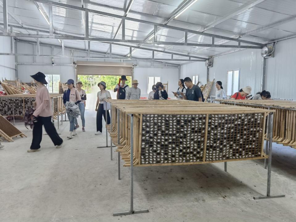 下午,队员步行至必克村桑蚕种养殖示范基地,沿途查看了当地的主要农作物分布、古墓碑刻和异地扶贫安置区的情况。在桑蚕种养殖示范基地,队员参观了蚕养殖场和蚕丝被制作,向工人了解当地的蚕产业的建设与发展。夜晚,队员在村中心了解当地布依农民小打音乐活动的开展情况。