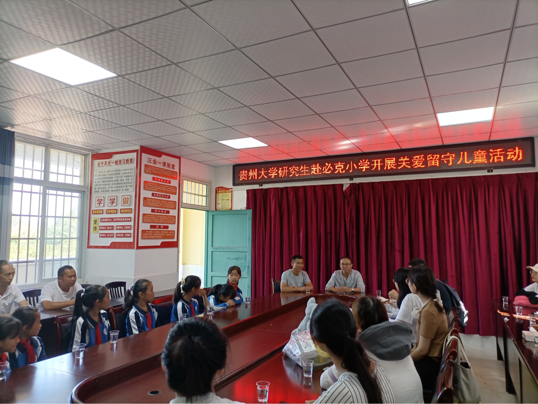 上午,我院研究生于必克小学与教室与学生代表开展座谈。会上,陈盛禄校长对贵州大学学生的到来表示了欢迎,希望贵大学子能为必克小学的学生们带来温暖与新的知识与思想,成为孩子的一扇思想的“窗户”。贵大文传学院研究生调研队总队长党志鹏代表发言:“与人民相结合,拜人民为师,向人民学习,是青年健康成长的必由之路。大学生不仅要读书,更要实践,不仅要学习理论,更要走进基层,不仅要读万卷书,更要行万里路。暑期实践调研是我们打开社会之门的钥匙,是培养、锻炼、促进、检验青年学很恶搞实际科研工作能力的一个重要环节,让我们得以跻身社会,向实践学习,向人民群众学习,体会奉献社会、增长才干的真正内涵。”