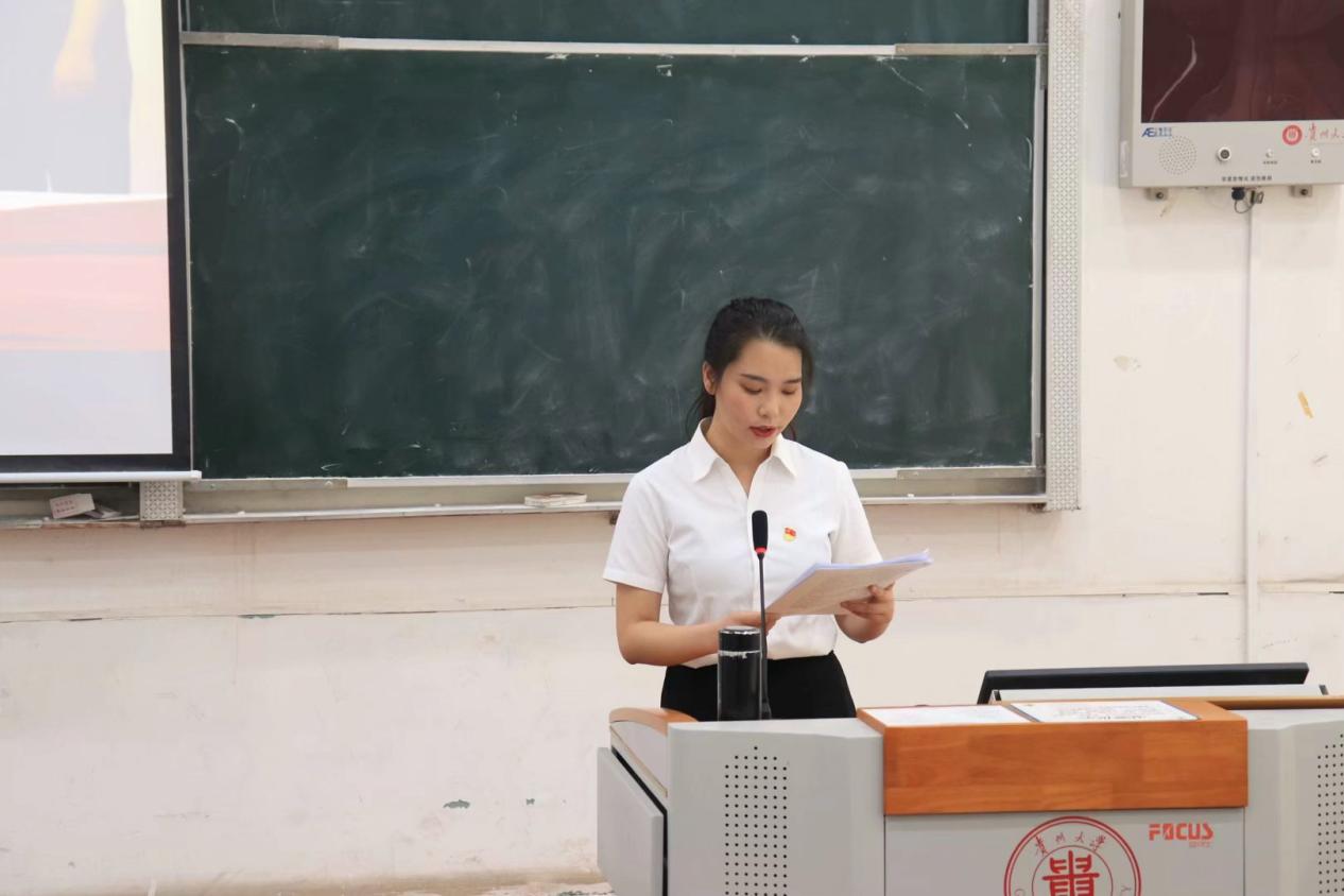 优秀党员代表汤思丽以自己的亲身尽力为各位新党员现身说法。汤思丽从两个方面的问题为新党员阐述深刻领悟党员身份的重要性和必要性。汤思丽认为党员是先锋战士,是模范标杆,是带头领导,党员一定要起到先锋模范带头作用,才能带得动群众一起干大事业,才能领导群众为中华民族伟大复兴而奋斗。汤思丽还从怎样成为一名优秀的共产党员和新党员分享了自己成才成长的心得。汤思丽认为第一必须坚定理想信念,第二是学习党的知识。汤思丽希望各位新党员能够坚定不移听党话、跟党走,怀抱梦想又脚踏实地,努力成长为堪当时代重任的时代青年。