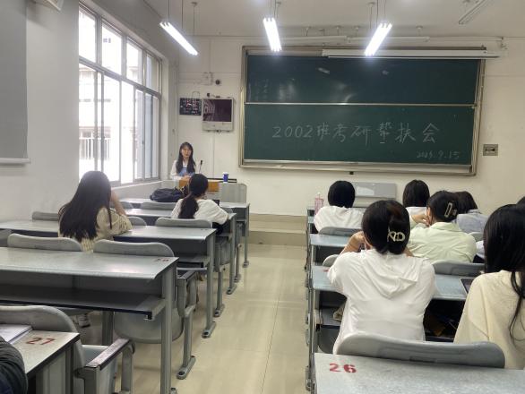9月14日、15日,8名研一党员以两两组队形式,分别给2020级本科生4个班召开了考研帮扶会。8名研一党员同志通过自身备考经验分享、座谈会式交流等方式,传授上岸经验、回答复习难点。2020级考研学子纷纷表示通过此次帮扶会关于备考遇到的问题得到了解答,考研信心更加坚定、目标更加明晰,更有动力与冲劲了。