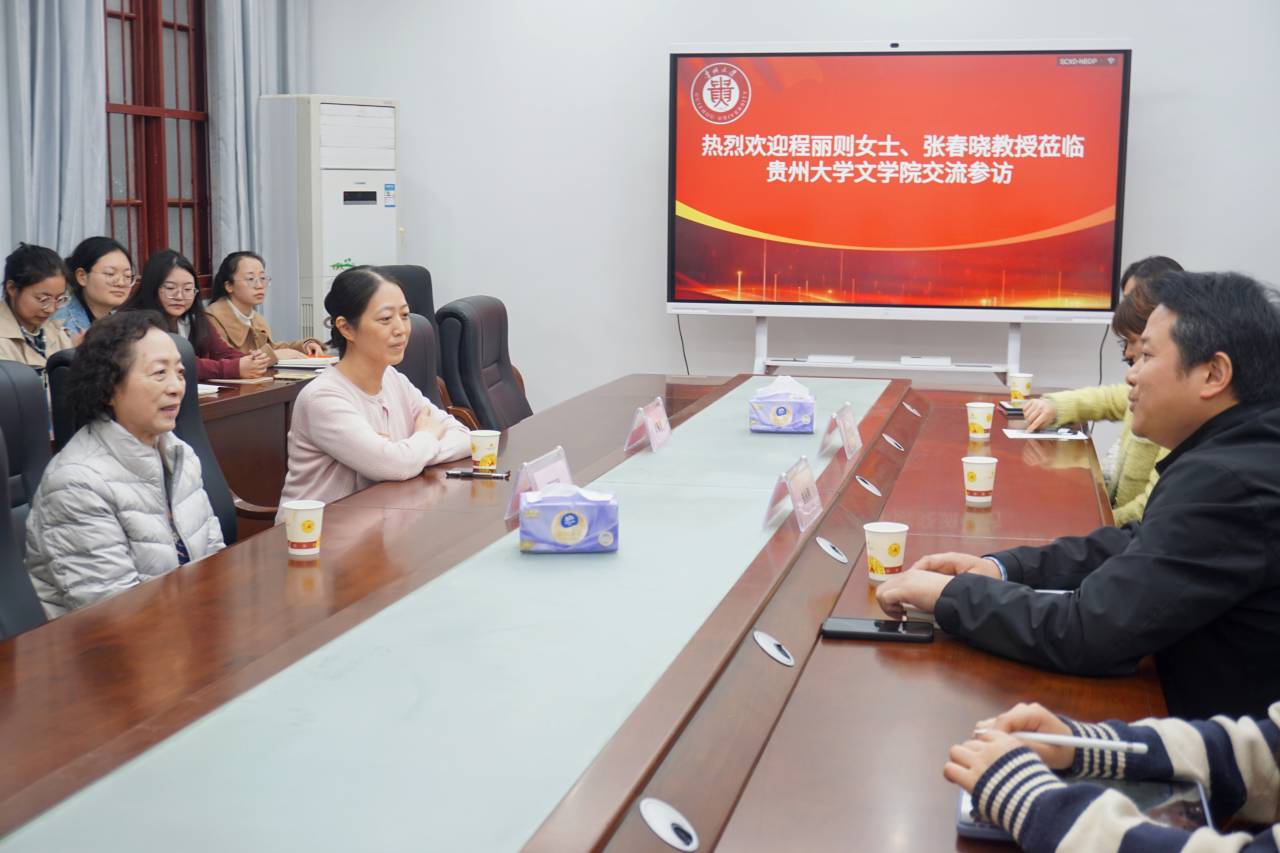 2023年10月20日下午,著名学者程千帆先生之女程丽则,程千帆先生外孙女、暨南大学米兰体育·(中国)官方网站副教授张春晓来我院调研交流,贵州大学米兰体育·(中国)官方网站副院长赵永刚主持交流会。米兰体育·(中国)官方网站部分研究生和本科生参加此次活动。