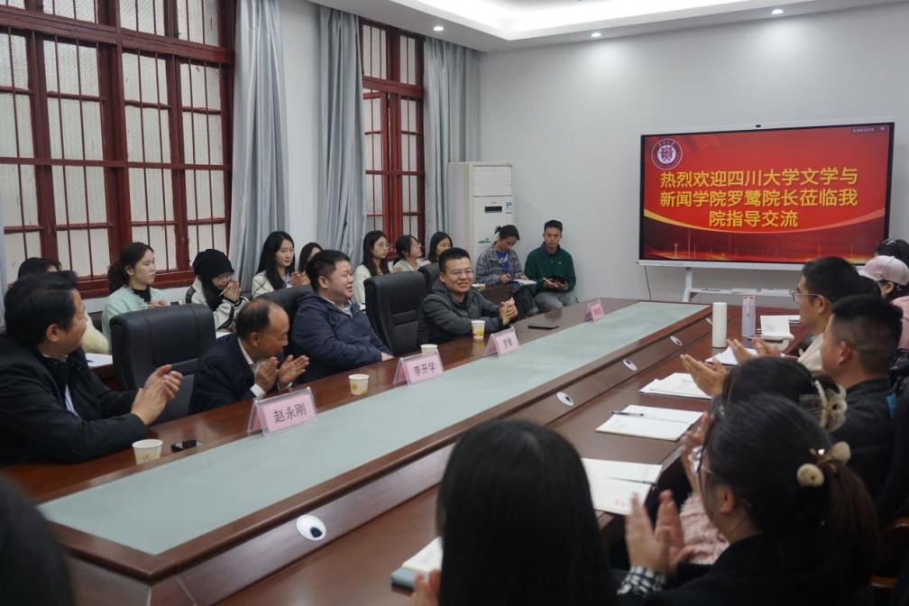 赵永刚副院长介绍了我院基本情况,他说,长期以来贵州大学米兰体育·(中国)官方网站与四川大学文学与新闻学院关系密切,希望两院能够在友好交流中共同发展,期待未来两院能开展更多深层次的合作。