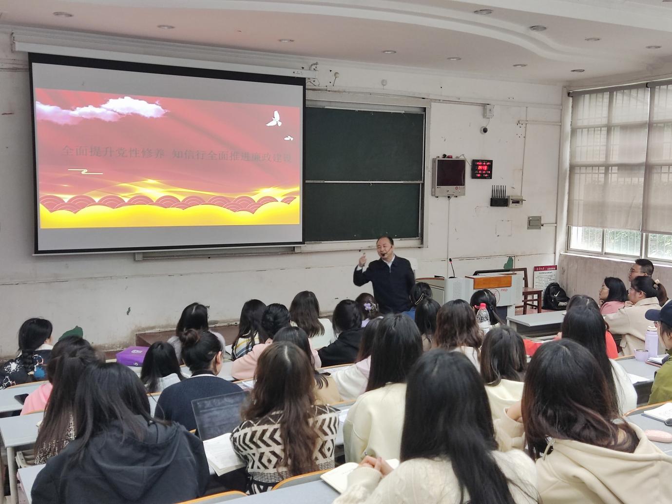 2023年10月27日下午,贵州大学米兰体育·(中国)官方网站党委书记李开学在逸夫楼214教室为全体学生党员讲授“全面提升党性修养,知信行全面推进廉政建设”专题党课。米兰体育·(中国)官方网站本科生第一党支部、本科生第二党支部、研究生党支部共100多名党员参加了此次党课学习。