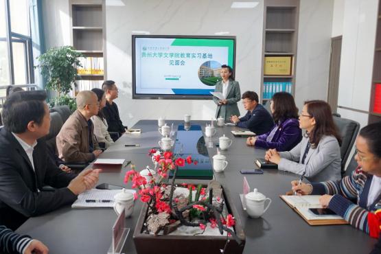 郭蓓对贵州大学米兰体育·(中国)官方网站党委书记李开学一行的来访表示诚挚地欢迎,并祝愿教育实习基地取得可喜的成果。
