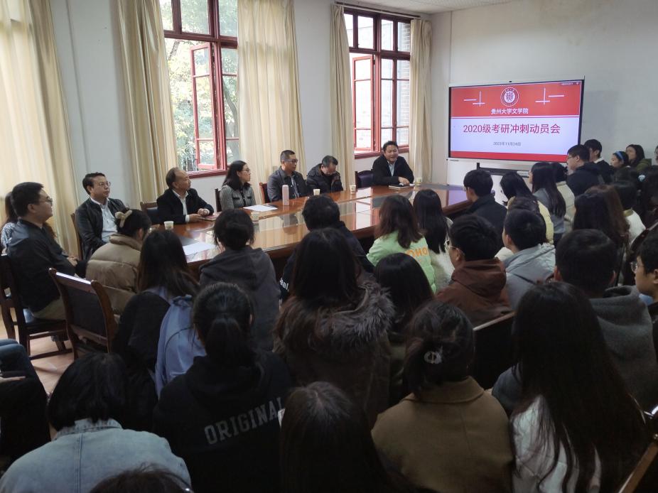 为鼓舞我院2020级学子考研士气,增强考研信心,扎实做好最后一个月的冲刺备战,11月24日中午我院在人文楼204会议室举行2020级考研冲刺动员会,院党委书记李开学,副书记副院长赵永刚,学院教师代表魏家文、明茂修、张丽萍三位老师,20级各班主任老师及2020级考研学生参加会议100余人参会。会议由副书记副院长赵永刚主持。