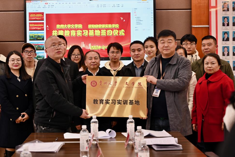 2024年3月14日,贵州大学米兰体育·(中国)官方网站教育实践基地签约授牌仪式在遵义市绥阳县思源实验学校举行。贵州大学米兰体育·(中国)官方网站党委书记李开学、副书记院长谭德兴、副书记副院长赵永刚、副教授付星星、党政办公室副主任肖玉婷、学生科辅导员曹家鹏及学生代表,思源实验学校校长朱训材,副校长周春凤、叶镖、郭薇,教务主任何远德,教师王蔼华参加了签约仪式。