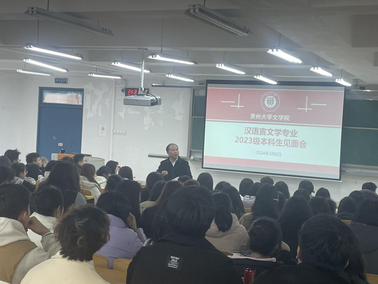 2024年3月8日下午,贵州大学米兰体育·(中国)官方网站在南校区致知楼102DT召开2023级本科生见面会,学院党委书记李开学、副书记院长谭德兴、副书记副院长赵永刚、本科生思政辅导员罗兰、曹家鹏及全体2023级本科生参加本次会议。会议由李开学主持。