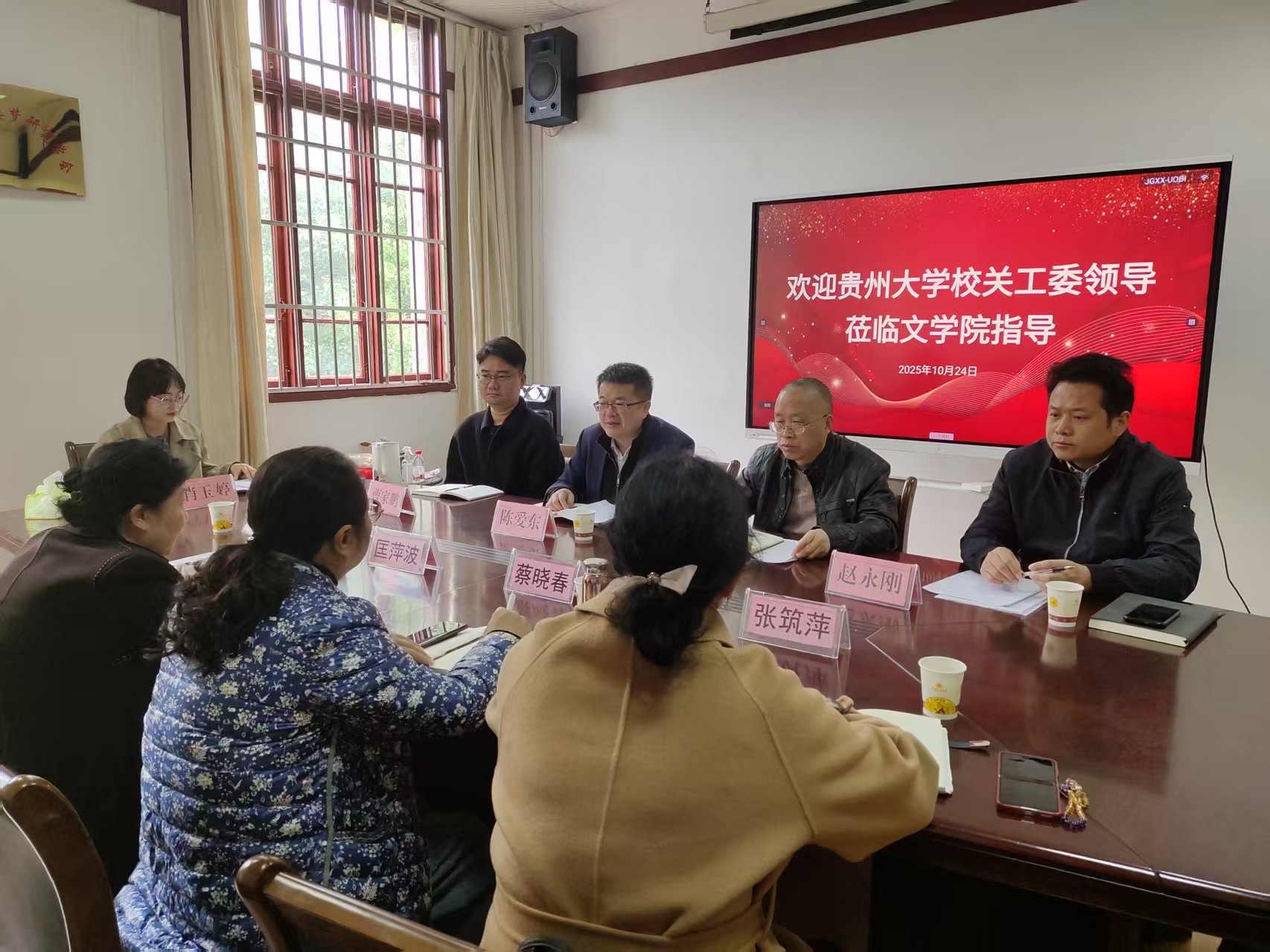 10月24日上午,贵州大学关工委领导匡萍波、刘艳、蔡晓春、张筑萍老师到米兰体育·(中国)官方网站指导工作。会议在人文楼304米兰体育·(中国)官方网站关工委办公室举行,学院党委书记陈爱东、院长谭德兴、米兰体育·(中国)官方网站关工委主任赵永刚、学生科副科长曹家鹏、党政办公室副主任肖玉婷参加会议。